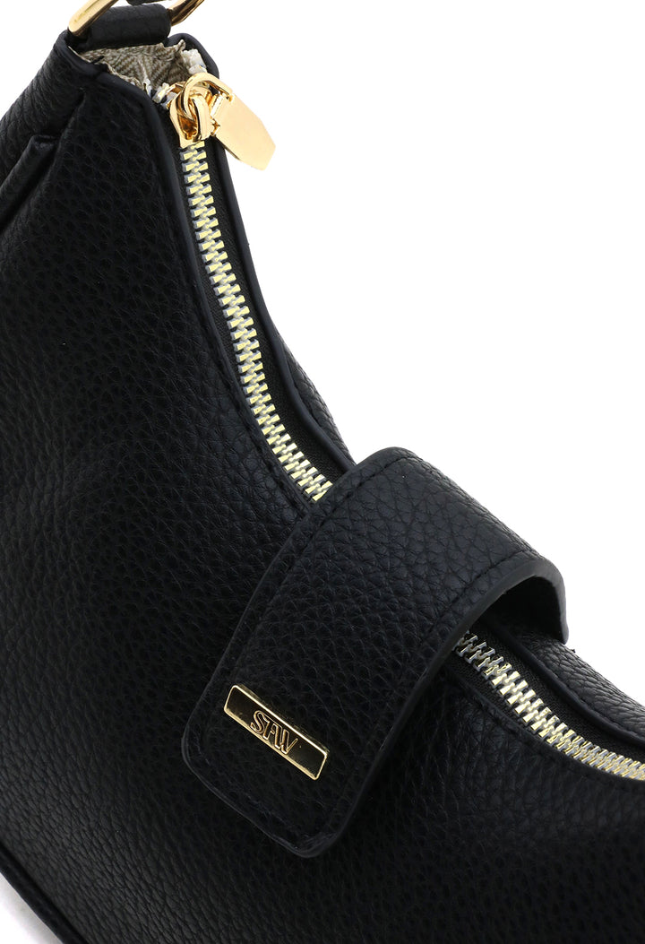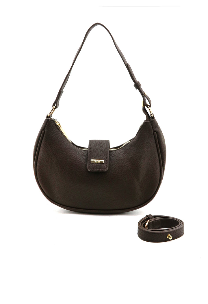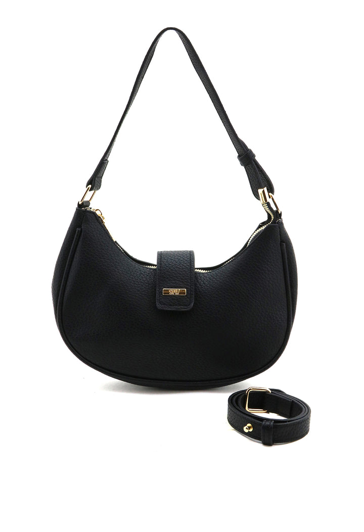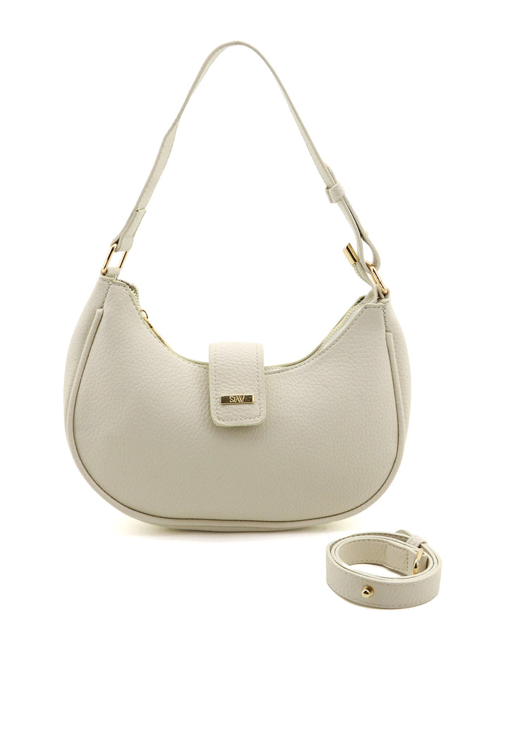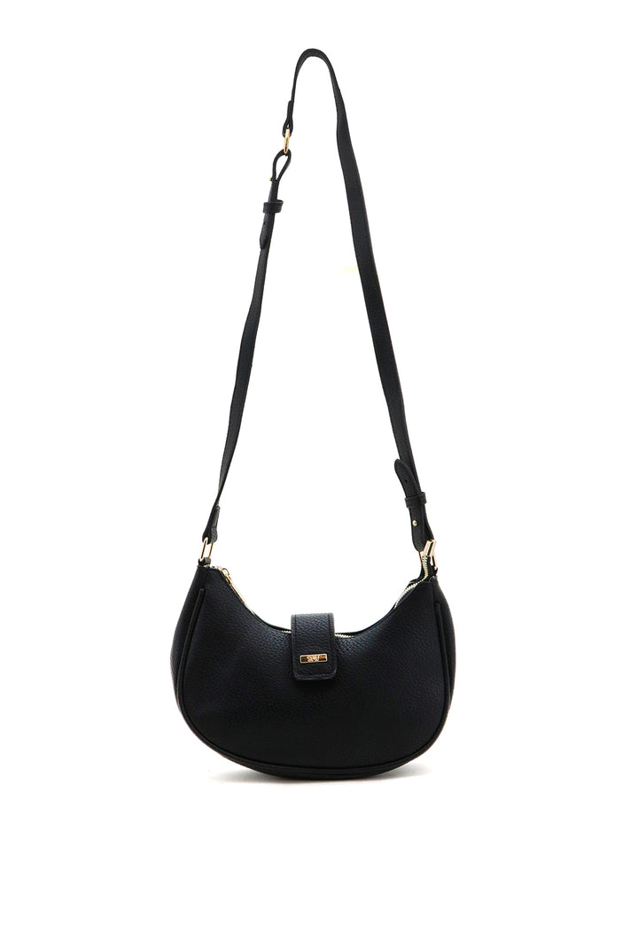 Bandolera de diseño minimalista con forma de media luna que combina elegancia y funcionalidad. Su tapa estructurada protege tus pertenencias mientras mantiene un perfil compacto ideal para el día a día. Perfecta para quienes buscan un accesorio versátil que complementa cualquier look, desde casual hasta formal. Confeccionada con atención al detalle para garantizar durabilidad y estilo.