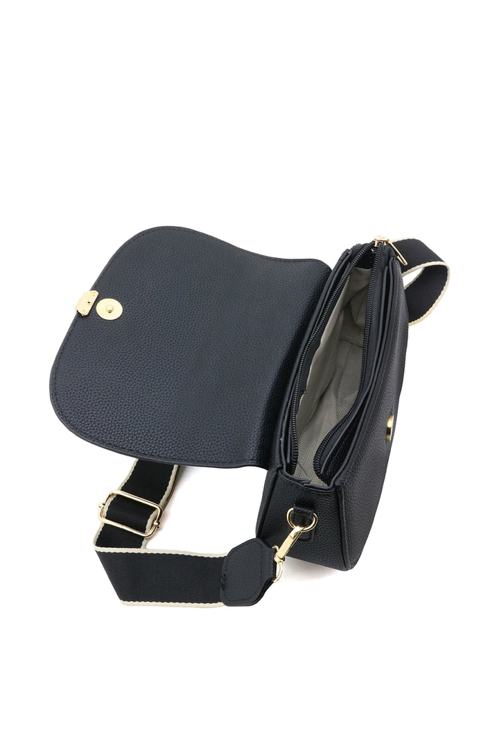 Bandolera de diseño minimalista con tapa ajustable que combina funcionalidad y elegancia. Su estructura compacta la hace perfecta para el día a día, mientras que los detalles cuidados en acabados reflejan un estilo refinado. Ideal para quien busca un accesorio versátil que complementa cualquier look con sobriedad y clase.