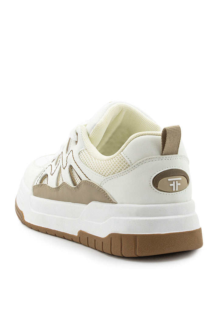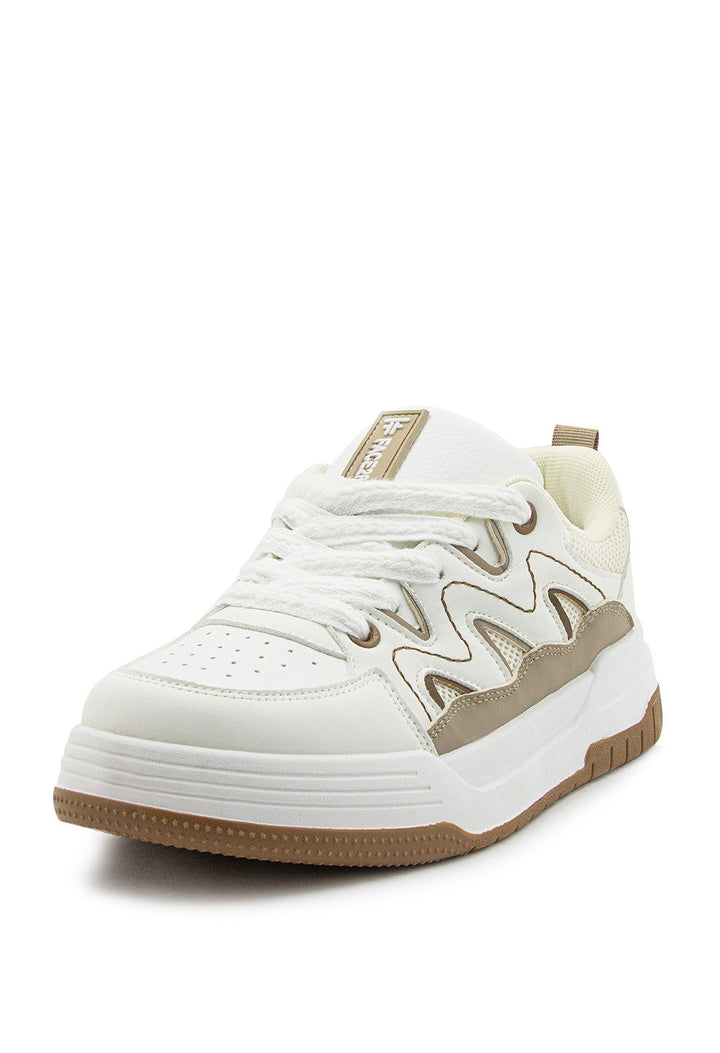 Tenis con diseño de ondas laterales que juega con la combinación bicolor, creando un efecto visual dinámico y moderno. Destaca el isotipo en relieve en la talonera, un detalle que refuerza la identidad de marca. La construcción en rubber proporciona durabilidad y comodidad para el uso diario, mientras que su estética sofisticada lo convierte en una opción versátil que transita entre lo casual y lo contemporáneo.